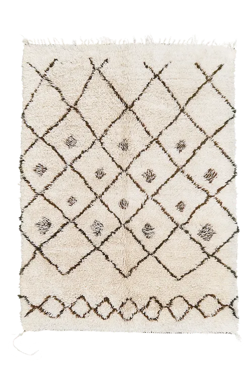 Beni M’Guild, 1960er. Seltene Schlingentechnik, Naturwolle, Rautenlinien. Zahl 6 – Harmonie, Gleichgewicht.